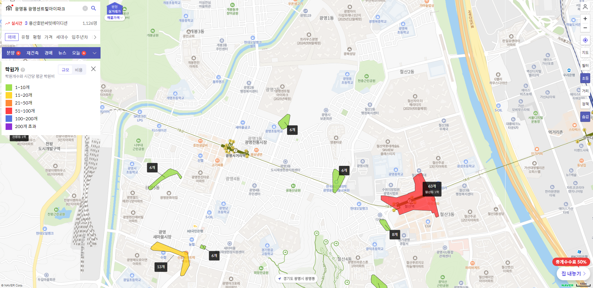- 학원가는 철산동쪽을 이용해야 할 거 같습니다.